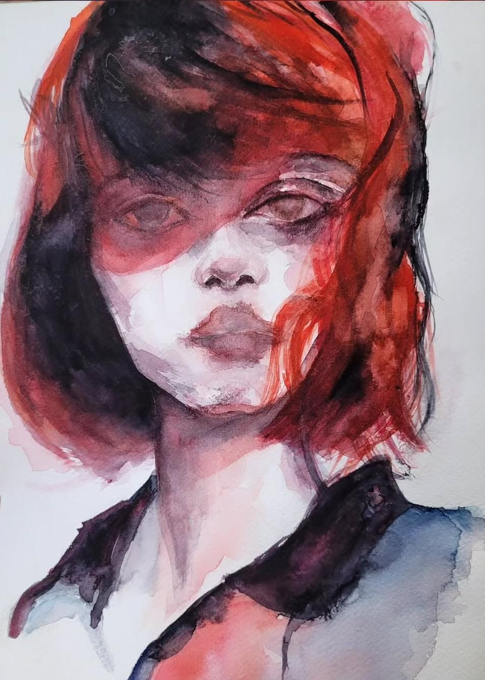 Ateş ve Tutku – Kırmızı Saçlı Kadın Portresi Suluboya