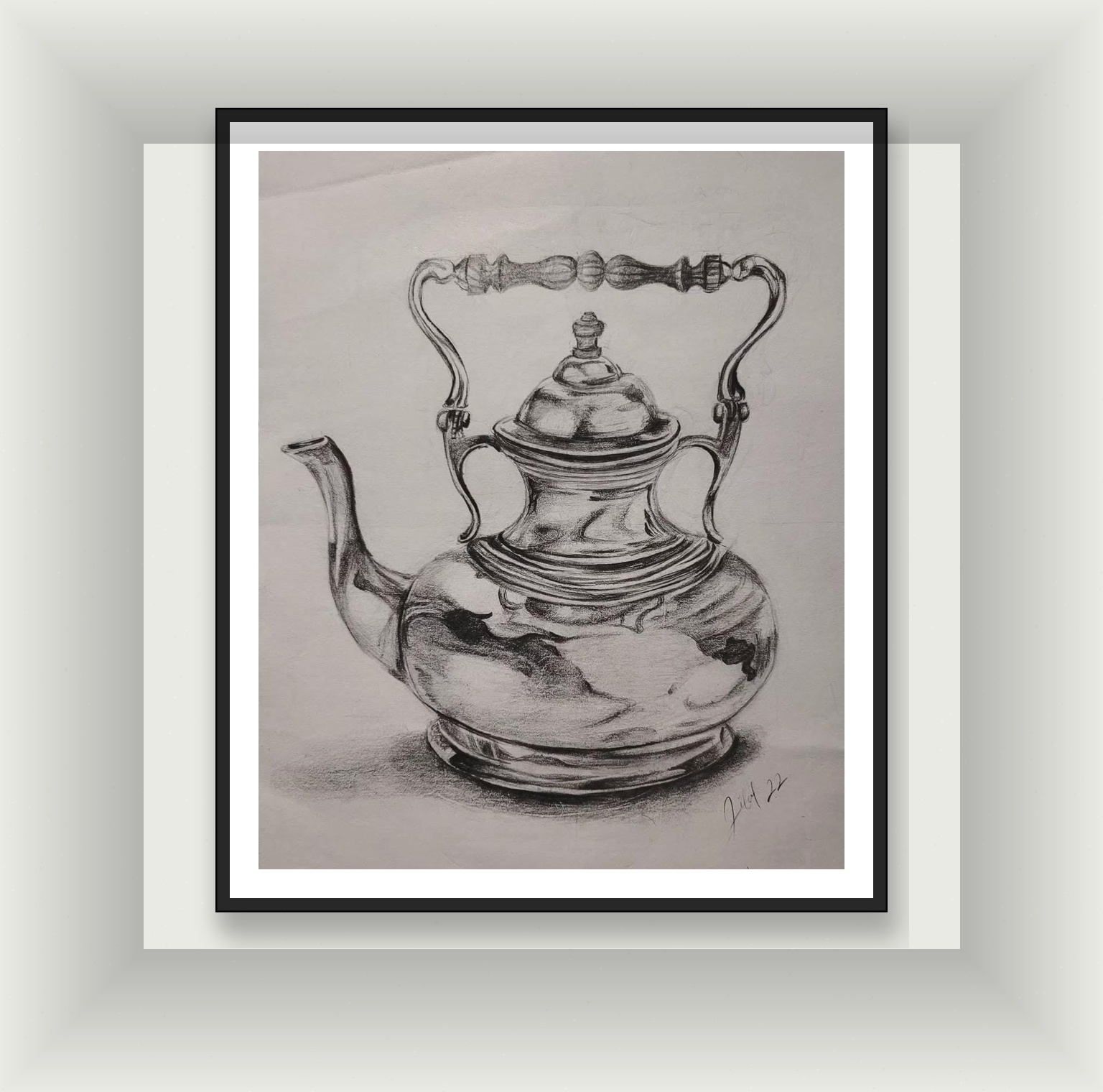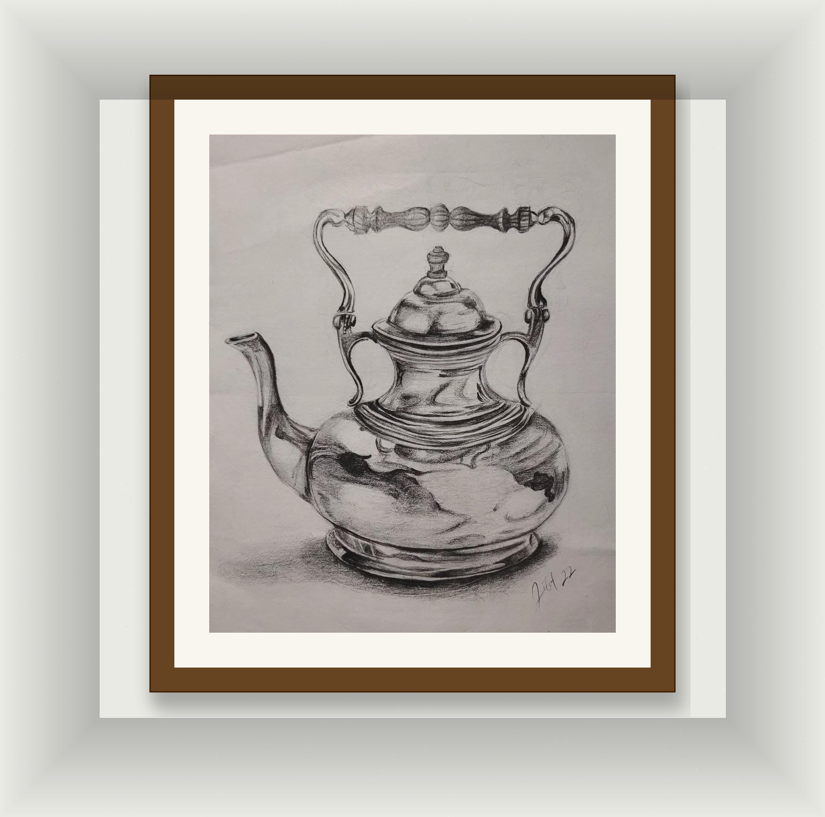 Gümüş Zarafet – Antika Çaydanlık Karakalem Çizimi